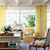Use fabric as inspiration to determine the color scheme of a room. The happy palette in this living room was inspired by the armchair's striped fabric. Shades of blue, yellow, and red with pops of lime and an abundance of patterns and colors create a laid-back room. The colorful accents have extra punch thanks to the living room's white walls.